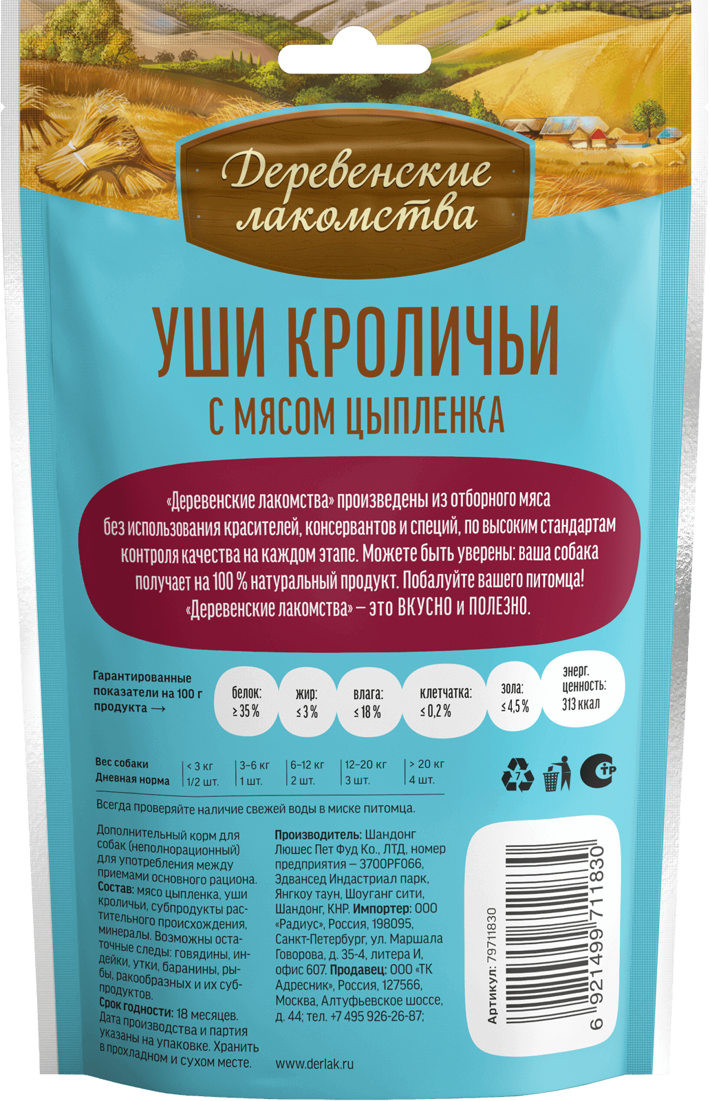 Выбирая Деревенские лакомства уши кроличьи с мясом цыпленка, вы обеспечиваете своему щенку вкусное и полезное угощение, которое станет отличным дополнением к его рациону.