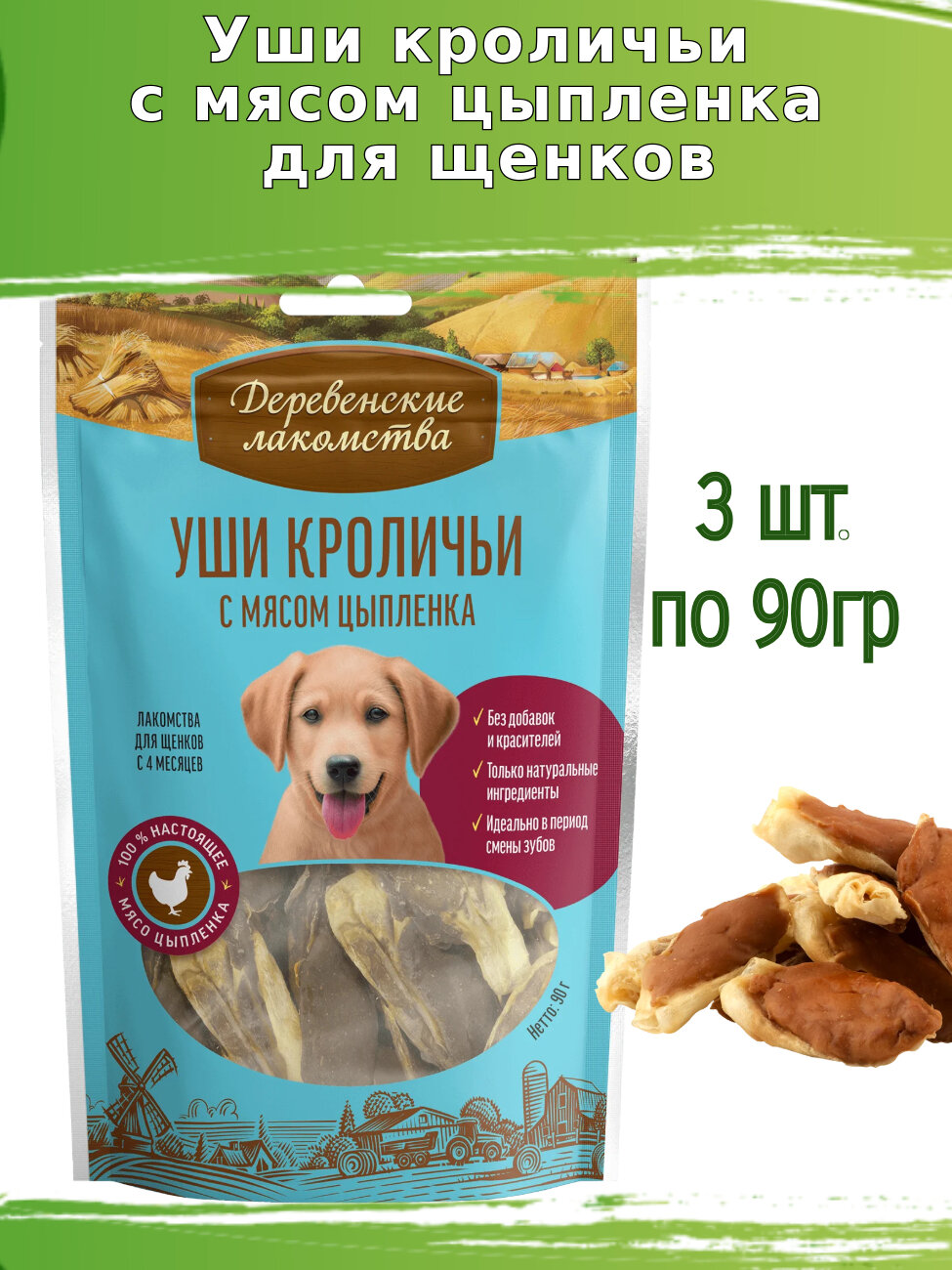 Купить Деревенские лакомства для щенков 3 шт по 90г уши кроличьи с мясом цыпленка с доставкой по всей России. Деревенские лакомства для щенков 3 шт по 90г уши кроличьи с мясом цыпленка: сравнение цен, характеристики, фото, актуальное наличие и цены.