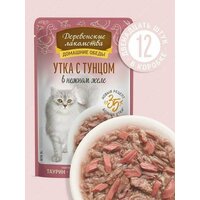 Деревенские лакомства Домашние обеды 12 шт по 70 г консервы для кошек утка с тунцом в нежном желе