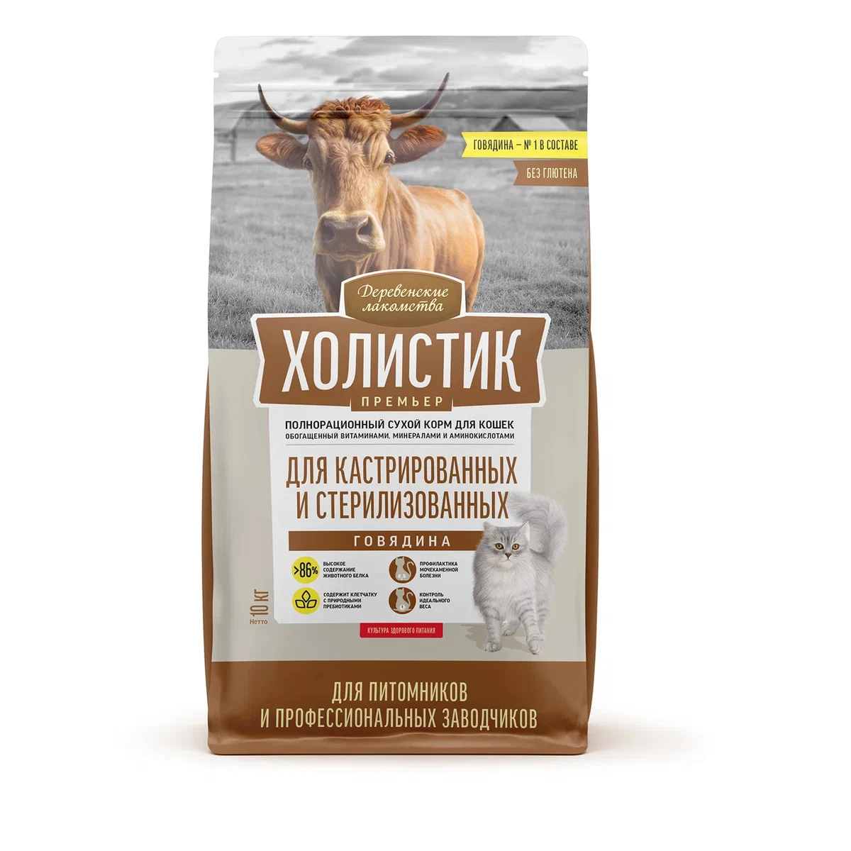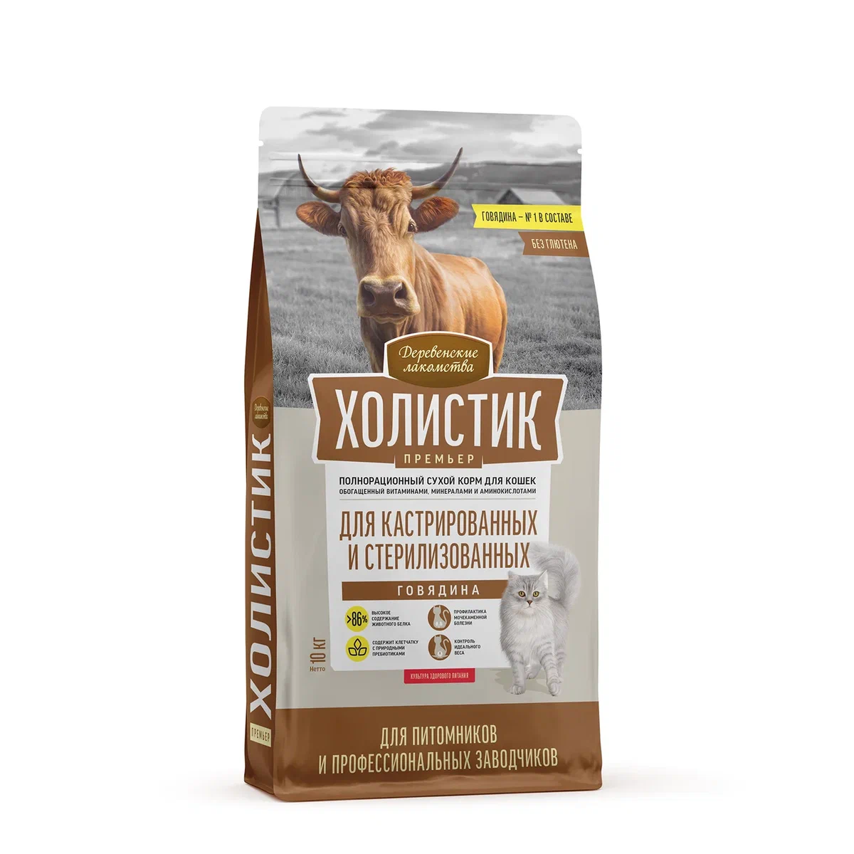 Полнорационный сбалансированный корм Холистик Премьер для взрослых кастрированных котов и стерилизованных кошек с говядиной.