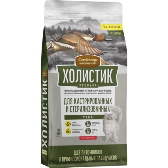 Полнорационный сбалансированный корм Холистик Премьер для взрослых кастрированных котов и стерилизованных кошек с уткой.