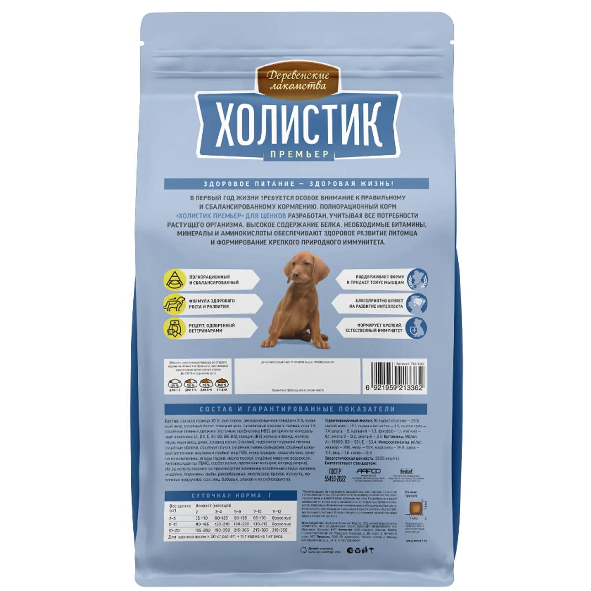Деревенские Лакомства Холистик Премьер для щенков с Курицей и рисом 3кг: сравнение цен, характеристики, фото, актуальное наличие и цены.