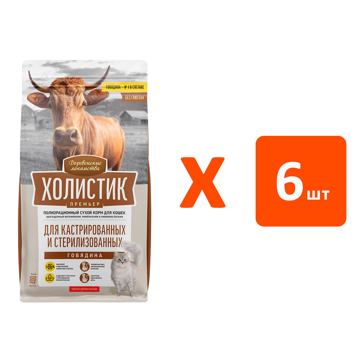 Полнорационный сбалансированный корм Холистик Премьер для взрослых кастрированных котов и стерилизованных кошек с говядиной.