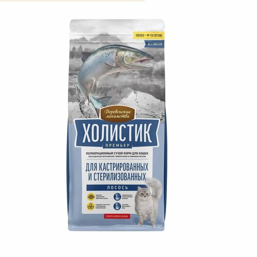 Серия полнорационных кормов «Холистик Премьер «Для кастрированных и стерилизованных» разработана специально для котов и кошек с особыми потребностями в рационе. Идеально сбалансированный, обогащенный необходимыми витаминами и аминокислотами, этот корм обеспечивает контроль за весом, поддерживает здоровье мочевыводящих путей и укрепляет естественный иммунитет. Дегидрированный лосось — 40 %, свежая утка — 13 %, дегидрированная говядина — 8 %, горох, куриный жир, дегидрированный анчоус — 5 %, тапиоковая мука, масло лосося —2 %, сушёные пивные дрожжи (источник пребиотика MOS), витаминно-минеральный комплекс (А, D3, E, B1, B2, B6, B12, ниацин (B3), холина хлорид, железо, медь, марганец, цинк, таурин, L-лизин), пребиотики FOS, сушёная тыква, сушёная груша, сельдерей, люцерна, шелковица, пустырник, спирулина, сушёная клюква, юкка Шидигера, сушёный цикорий (источник инулина). Из-за использования на производстве возможны остаточные следы: кролика, индейки, баранины, рыбы, ракообразных, моллюсков, орехов, кунжута, молочных продуктов, сои, яиц, бобовых, злаков и их субпродуктов. Гарантируемые показатели: сырой протеин - 38%, сырой жир - 16%, сырая клетчатка - 5%, сырая зола - 8,5%, влага - 10%, кальций - 1,1%, фосфор - 1%, лизин - 3% Энергетическая ценность - 3740 Ккал/кг Добавленные вещества: Витамины: А - 660 МЕ/кг, D3 - 5000 МЕ/кг, E - 1050 МЕ/кг, B1 - 300 мг/кг, B2 - 210 мг/кг, B6 - 240 мг/кг, B12 - 340 мкг/кг, ниацин (B3) - 3600 мг/кг, холина хлорид - 2000 мг/кг, Микроэлементы (мг/кг): железо - 80, медь - 200, марганец - 200, цинк - 1000 Аминокислоты:таурин - 0,2%, L-лизин - 0.01%,DL-метионин - 0,3%, L-карнитин тартрат - 0,07%, Антиоксиданты: TBHQ, сорбат калия, пропионат кальция, хлорид натрия, лецитин