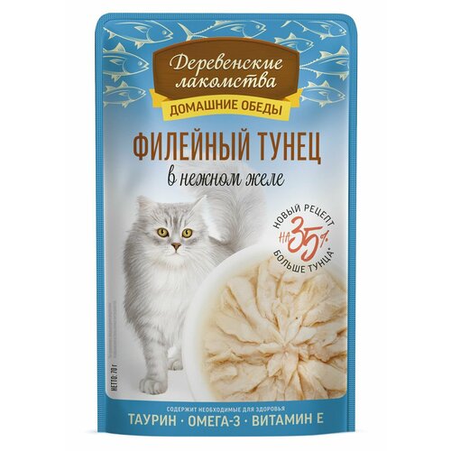 Деревенские лакомства конс. д/кошек Филейный тунец в нежном желе 70г 36шт: сравнение цен, характеристики, фото, актуальное наличие и цены.