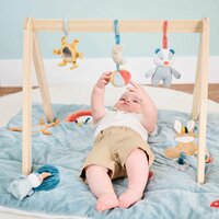 - Деревянная арка с подвесными элементами - Пищалка, погремушка и зеркало - Прочная конструкция из высококачественного материала - Фигурки съемные, их можно стирать в машине при 30°