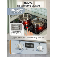 • Детская плита кухонная со светомузыкальными эффектами: при нажатии на кнопку включается подсветка и раздается звук жарки. Для работы потребуются 2 батарейки типа АА (не входят в комплект).
