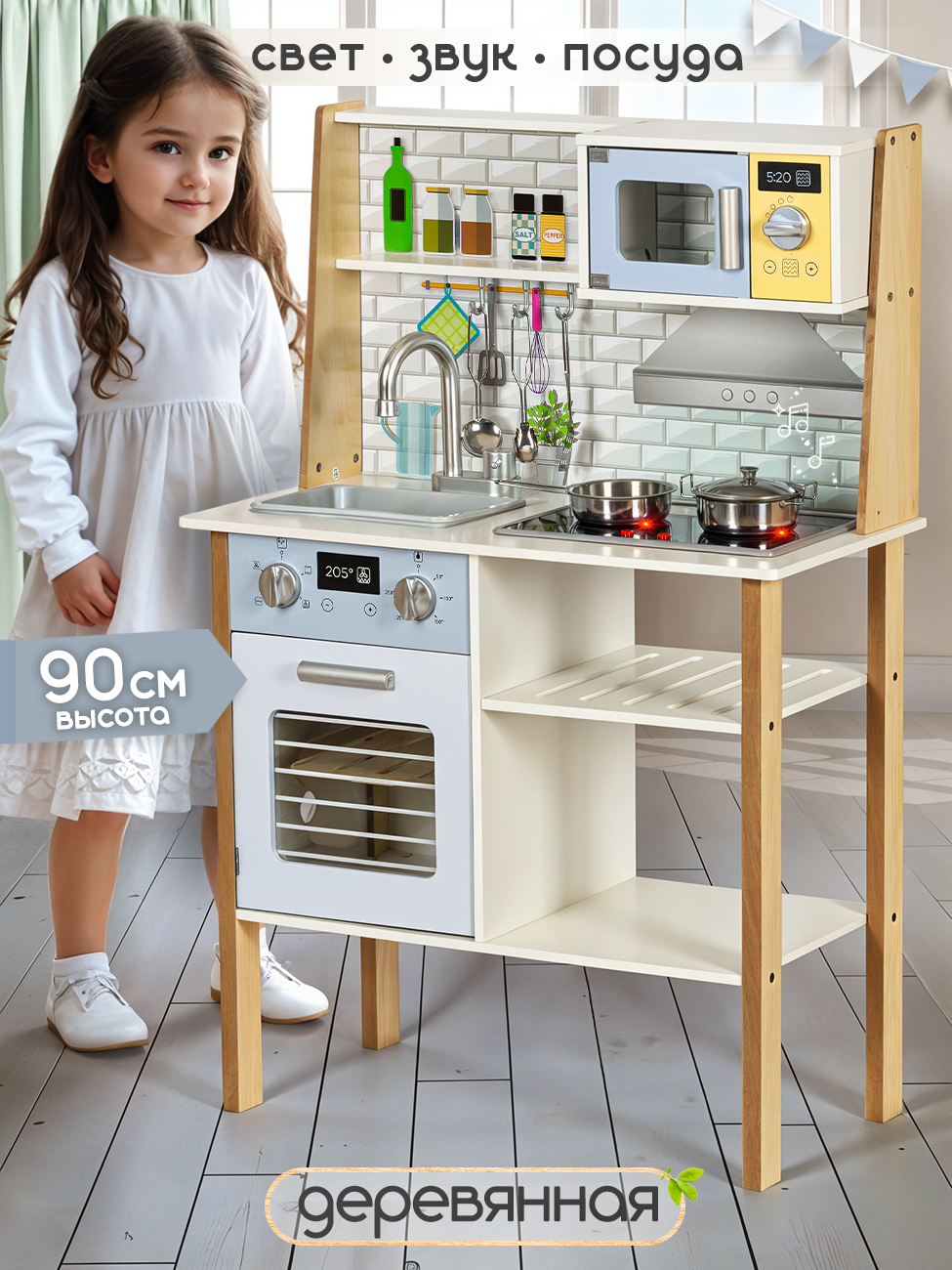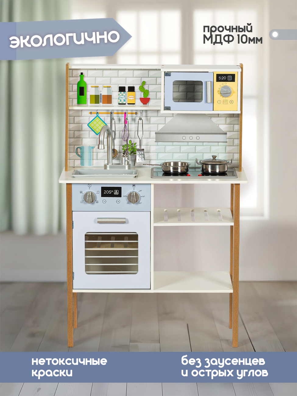 Кухня детская игровая деревянная позволит ребенку придумывать новые сюжеты для своих игр, развивая при этом творческие способности, социальные навыки, моторику и координация. Игрушечная кухня станет отличным подарком на Новый год или любой другой праздник. Изготовленная из высококачественного МДФ, большая детская кухня порадует детей своей реалистичностью, а взрослых — долгим сроком службы. Подробная инструкция в комплекте поможет легко собрать игрушечную кухню самостоятельно.