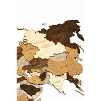Большая карта мира — многоуровневая: все страны мира на политической карте вырезаны по отдельности и с разной толщиной, отшлифованы и покрыты маслами премиум качества. Из-за эффекта объема за счет трех разных высот вы получаете не просто карту мира из дерева, а полноценное 3D украшение интерьера, которое сделано вручную.