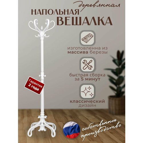 Напольная деревянная вешалка выполнена из массива березы. Благородный внешний вид и отличное качество изделия отвечают высоким стандартам и отличают своих обладателей хорошим вкусом.