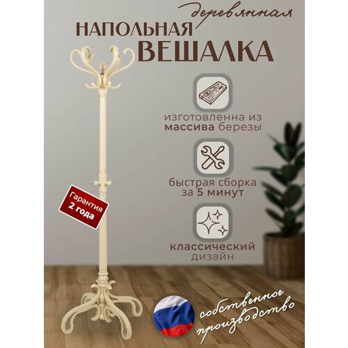 Напольная деревянная вешалка выполнена из массива березы. Благородный внешний вид и отличное качество изделия отвечают высоким стандартам и отличают своих обладателей хорошим вкусом.