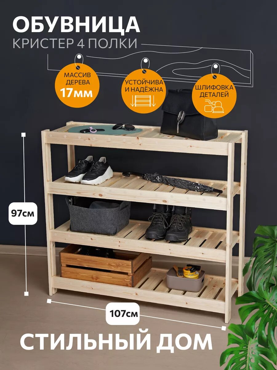 Прочная и вместительная обувница в прихожую из 4х полок украсит любой интерьер и организует красивое и удобное хранение