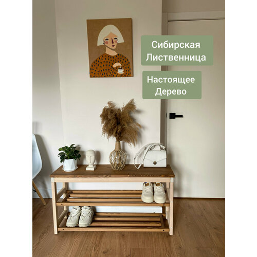 Деревянная обувница из Лиственницы с сиденьем и двумя полками, лофт, минимализм 105х55х30, цвет белый, Орех: сравнение цен, характеристики, фото, актуальное наличие и цены.