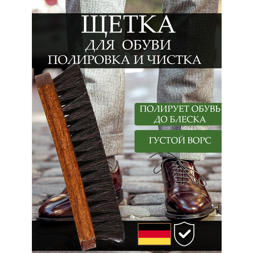 Щетка предназначена для окончательной полировки обуви из гладких видов кож. Благодаря натуральному конскому волосу равномерно полирует поверхность не повреждая ее. Также предназначена для чистки обуви, одежды и аксессуаров из замши, велюра, нубука от небольших загрязнений, придавая свежий вид изделиям.