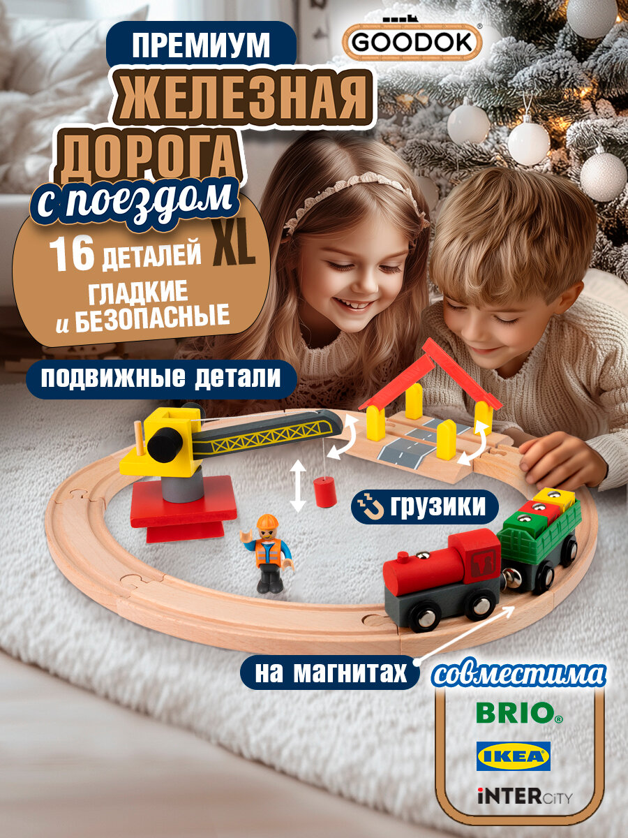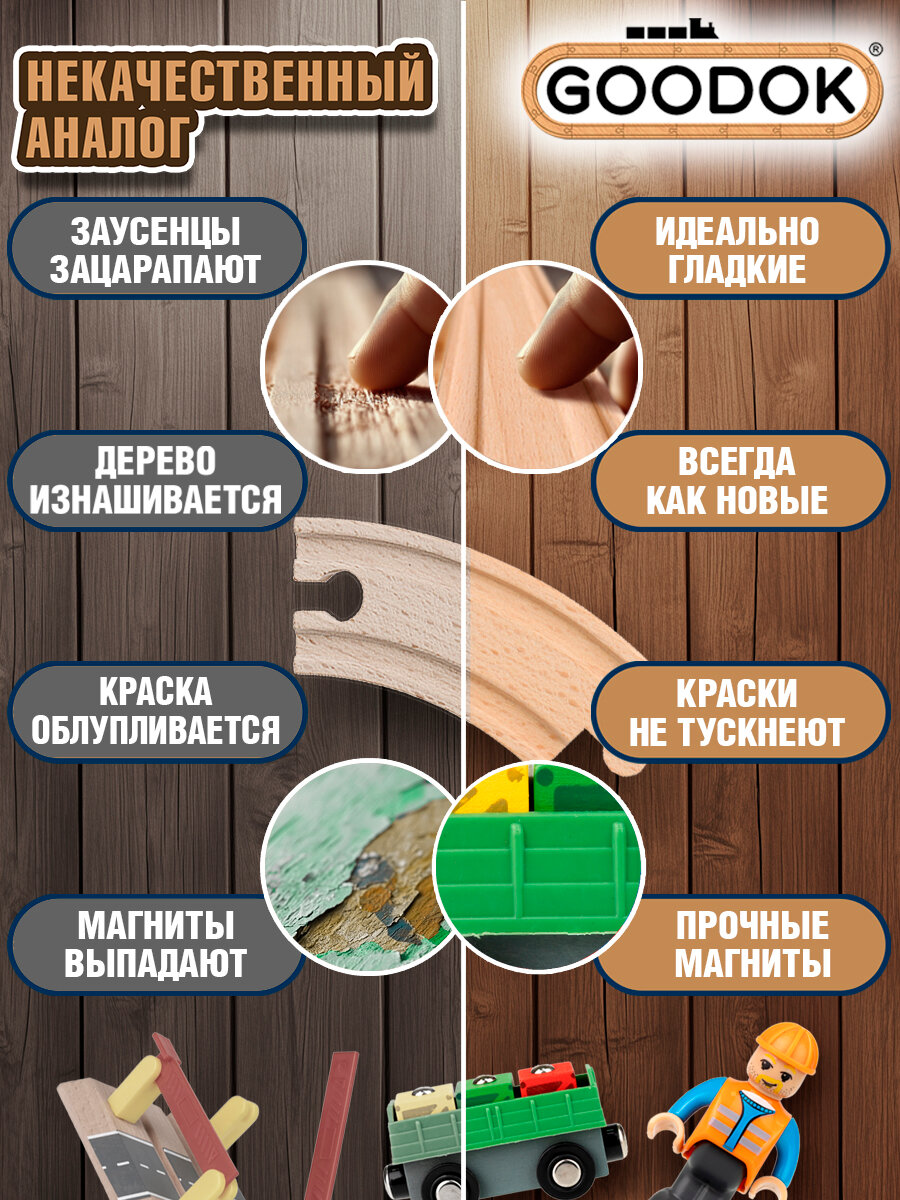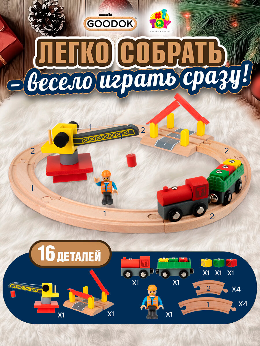 "GOODOK от 1TOY – это премиальная линейка игровых наборов и аксессуаров в мире деревянных железных дорог. Все детали коллекции максимально качественны, функциональны, долговечны и безопасны для детей от трёх лет. Деревянные игрушки изготовлены из тщательно обработанного бука, что обеспечивает их долговечность и экологичность. Благодаря тщательной обработке материалов детские игрушки GOODOK способны выдержать самые активные игры.