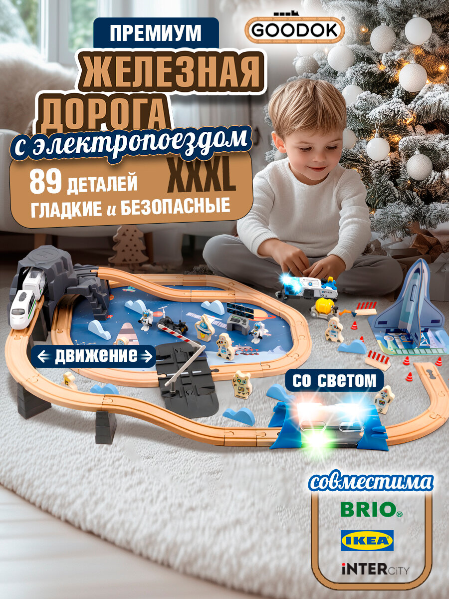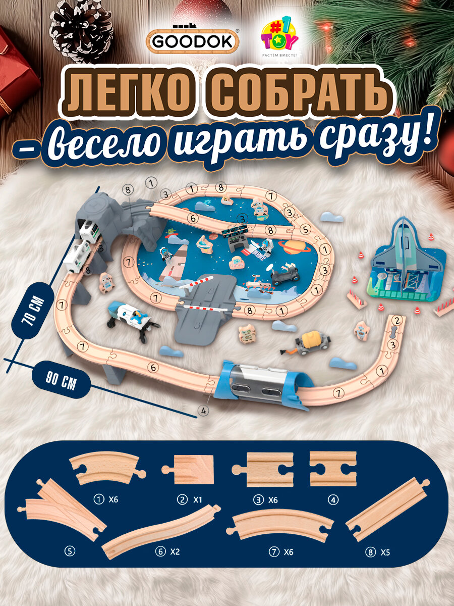 Деревянная железная дорога 1TOY GOODOK «Космопорт» с электропоездом и аксессуарами, 89 деталей: сравнение цен, характеристики, фото, актуальное наличие и цены.