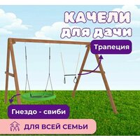 Купить Деревянные качели National Tree Company с трапецией и качелями гнездо Свиби, уличные подвесные качели для дачи с доставкой по всей России.