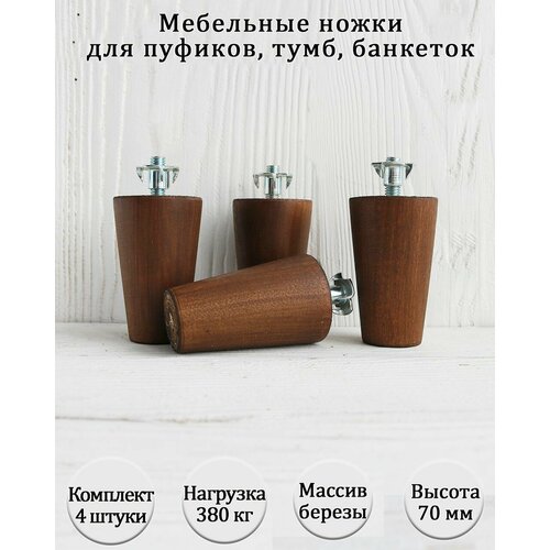 Деревянные мебельные ножки для кровати, кресла, комода, тумбы, шкафа / высота 70 мм / комплект 4 штуки
