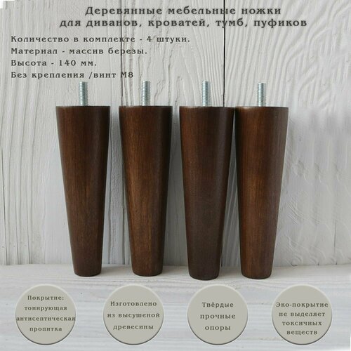 Купить Деревянные мебельные ножки из для дивана, кресла, кровати, комода, тумбы, шкафа / высота 140 мм / комплект 4 штуки с доставкой по всей России. Деревянные мебельные ножки из для дивана, кресла, кровати, комода, тумбы, шкафа / высота 140 мм / комплект 4 штуки: сравнение цен, характеристики, фото, актуальное наличие и цены.