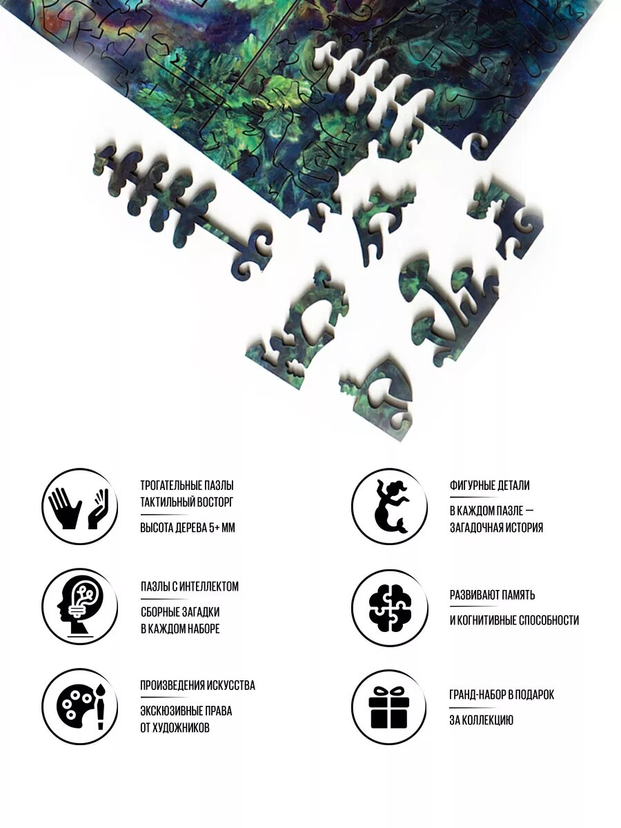 Деревянные пазлы DAVICI - это настоящее произведение искусства, созданное из высококачественного дерева и сделанное с любовью и заботой. Они запоминающиеся и прекрасно подходят для вечеринок и посиделок в кругу близких и друзей. Создайте свою художественную картину из пазла и испытайте удовольствие от его сборки.