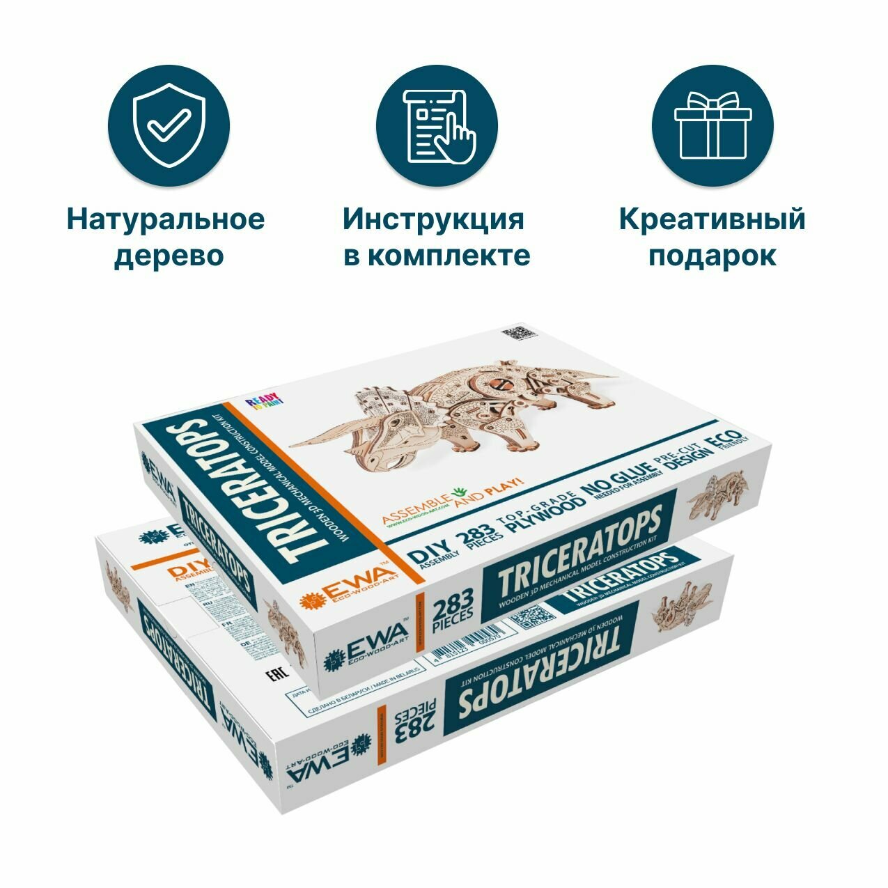 Купить Деревянный конструктор 3D, Механическая сборная модель EWA Динозавр Трицератопс с доставкой по всей России.