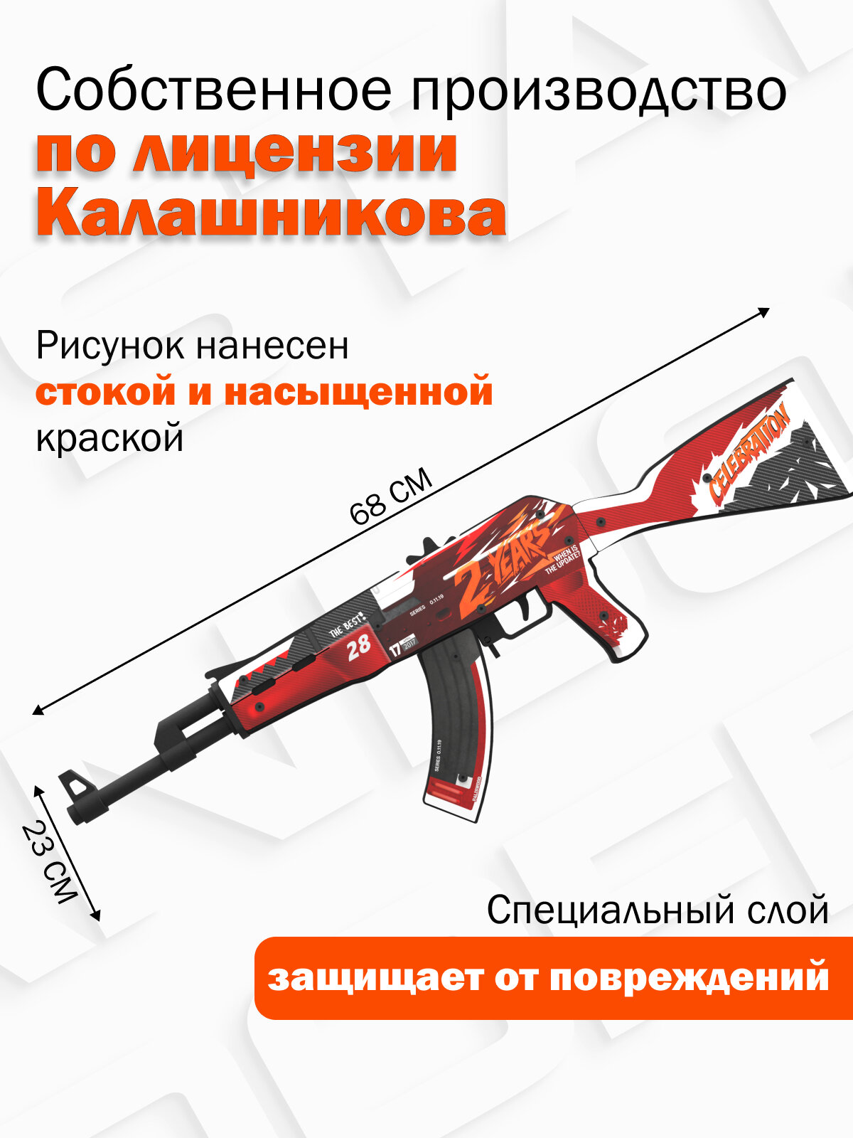 Купить Деревянный автомат резинкострел АК-47 «2 года красный» 68 см из Words of Standoff с доставкой по всей России.