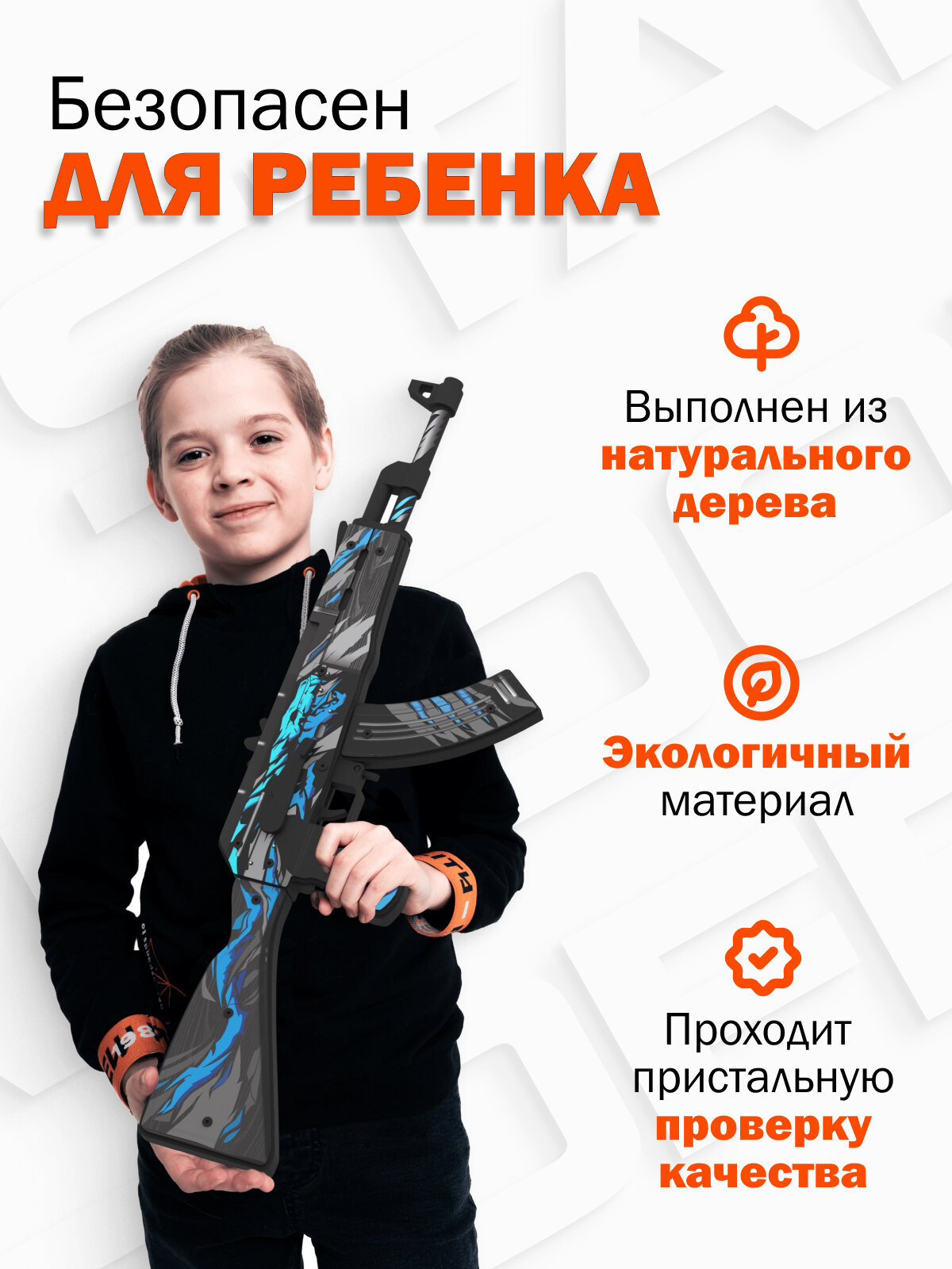Купить Деревянный автомат PalisWood АК-47 «Айсвинг», резинкострел, игрушечный, 68см из Words of Standoff с доставкой по всей России.