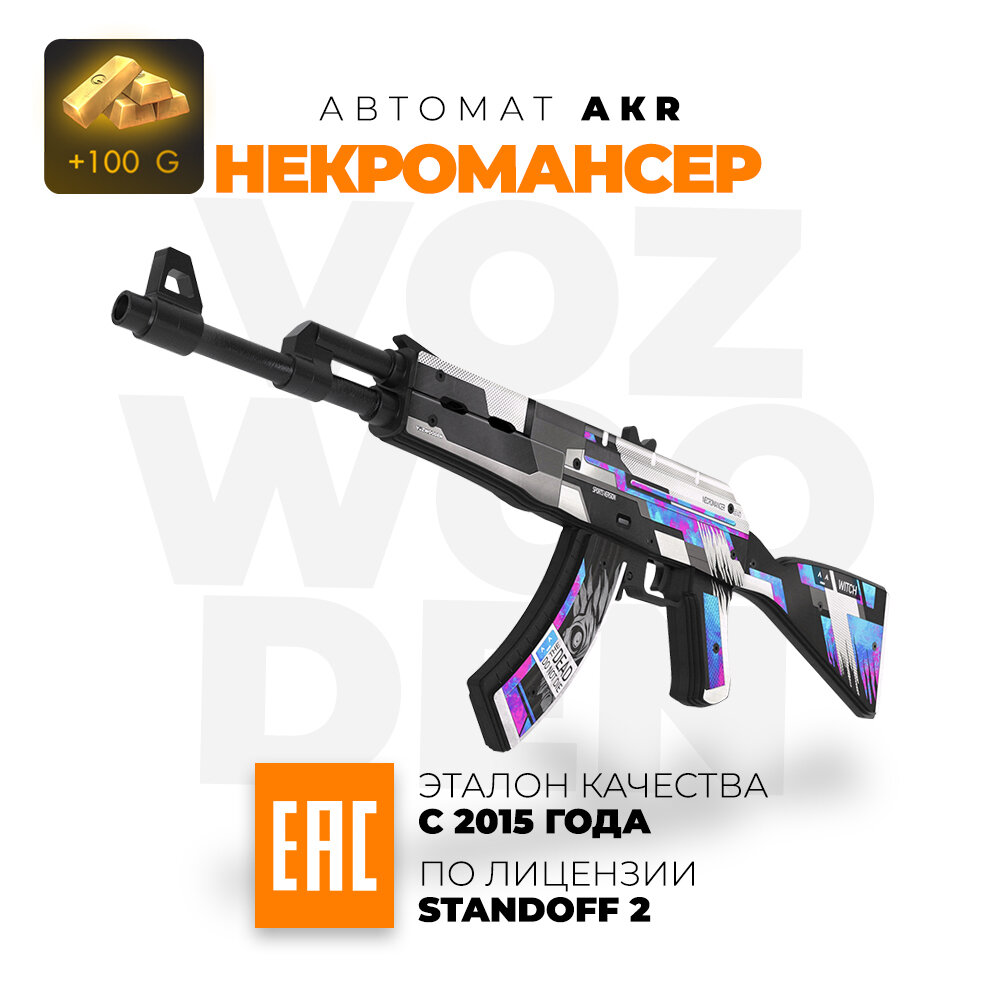 Добро пожаловать в захватывающий мир Standoff 2, где вы можете погрузиться в реальную игру с нашим деревянным автоматом AKR в скине "Некромансер" Этот автомат - не просто игрушка, а настоящий сувенир для истинных фанатов игры.