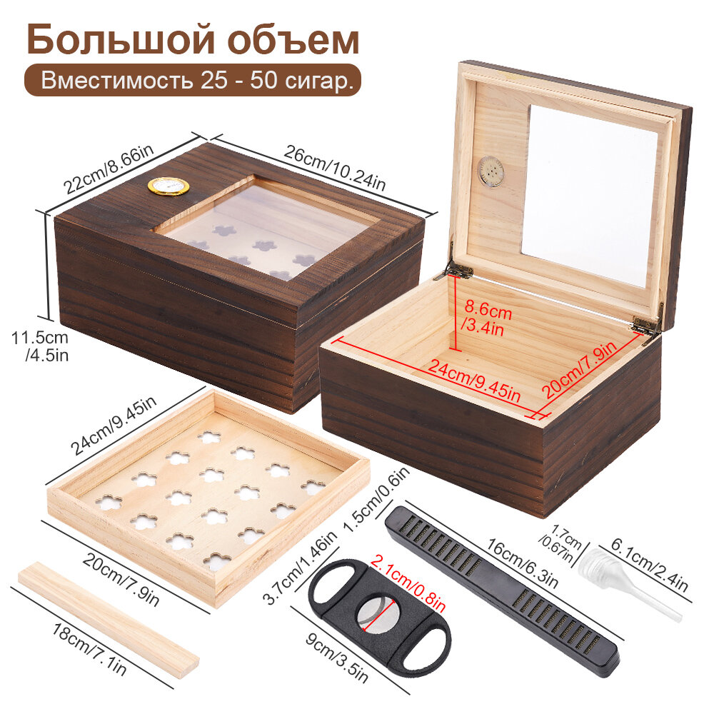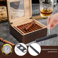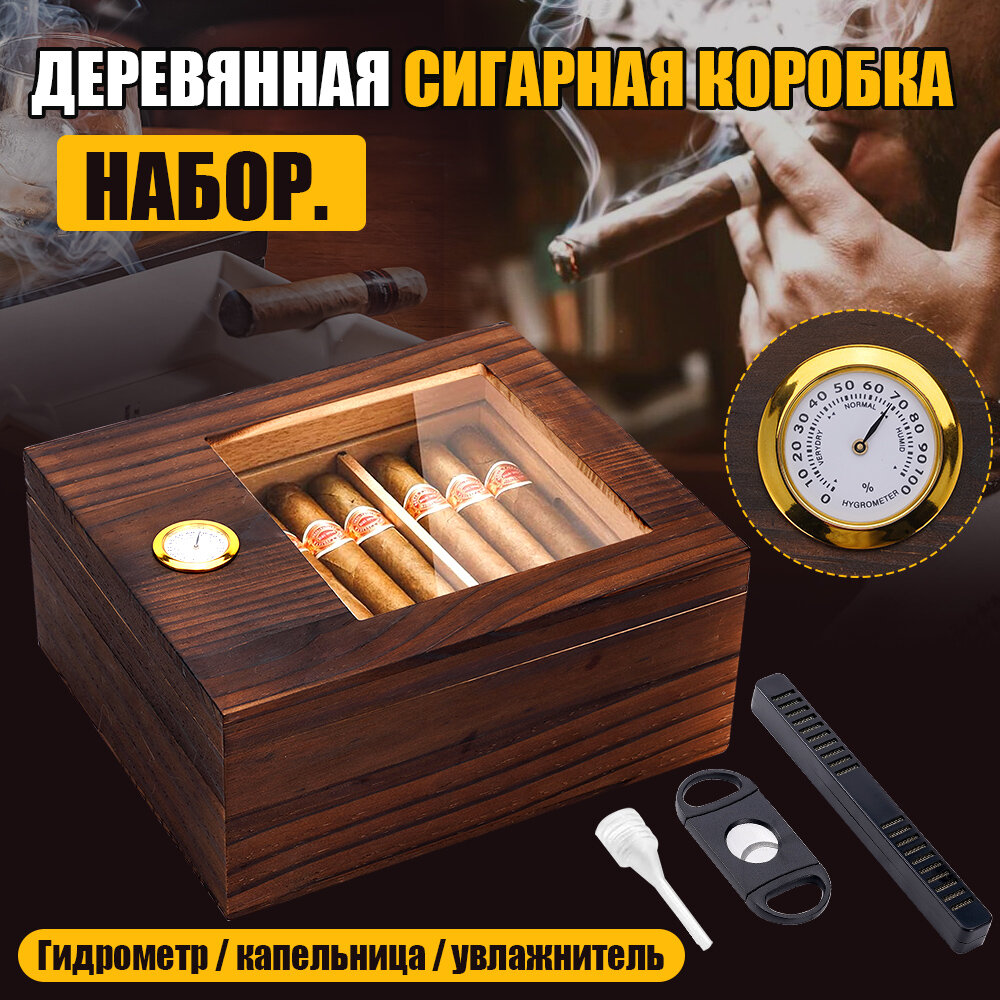 Деревянный хьюмидор с прозрачной крышкой для хранения сигар, круглый гигрометр, увлажняющий набор, 6 предметов: сравнение цен, характеристики, фото, актуальное наличие и цены.