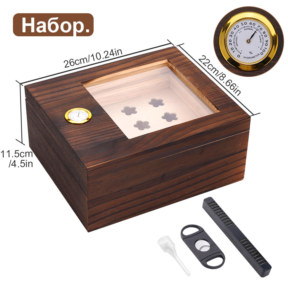 Деревянный хьюмидор с прозрачной крышкой для хранения сигар, круглый гигрометр, увлажняющий набор, 6 предметов: сравнение цен, характеристики, фото, актуальное наличие и цены.