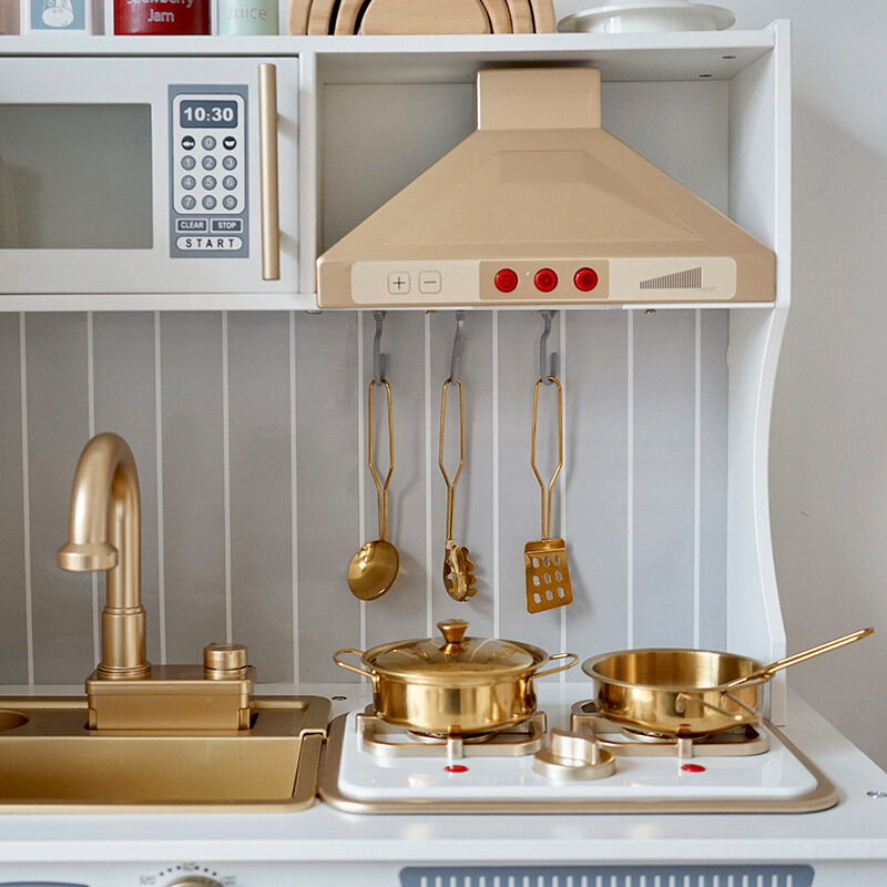 Деревянный игровой домик, детские золотые кухонные игрушки для мальчиков и девочек, имитирующие кухонные принадлежности для приготовления пищи, Набор кастрюль и сковородок, датская духовка: сравнение цен, характеристики, фото, актуальное наличие и цены.