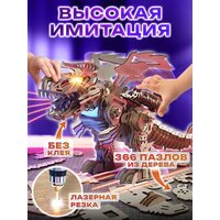 Деревянный 3д конструктор головоломка "Эра динозавров" — серьезная задача для строителей, и он даже в первую очередь конструктор для взрослого, потому что достаточно сложный. Деревянный пазл с динозавром для самостоятельной сборки T-Rex 9 состоит из 366 деревянных блоков: сборка занимает около 6 ч. Прочная и качественная ручная работа. Деревянная головоломка из высококачественной липы, а толщина элементов - 3-4мм. Точная технология лазерной резки движущиеся игрушки контролирует погрешность деталей в пределах 5 микрон. Каждый деревянный брусок мы шлифуем. Имитация модели тираннозавра: каждый ребенок любит динозавров. Смоделированная модель оснащена 2 шкивами и звуковыми эффектами. Деревянный механический конструктор для мальчиков и девочек ревет и ходит. Детям понравятся эти игрушечные захватывающие движения с классными звуками. Деревянный пазл из фанеры с подсветкой перенесет вас в мир динозавров. Вся модель с моторчиком имеет шипо-пазовую конструкцию без клея. Уникальное оформление: 3D пазл из дерева — отличный дизайн для домашнего декора и испытание для тех, кто любит создавать. Когда вы ее поставите, изысканный внешний вид на 10 чку поразит ваших друзей. Объемные сборные модели из дерева и крутые 3d фигурки конструкторы для взрослых мужчин и детей - полезное и интересное занятие, которое развивает память, внимание и детское воображение. Работает от батареек. Поделки из дерева подходят для подарка друзьям и родственникам, любящим древесину. Увлекательное занятие под любой возраст. Процесс создания модельки требует 3-х мерного моделирования. В подарочный набор входит инструкция, которая позволит собрать деревянный конструкцию ребенку с 8 лет. Также, чтобы собрать модель в комплекте есть все необходимые инструменты. Создайте незабываемые и запоминающиеся моменты совместной работы со своими детьми и семьей, собирая набор высококачественных 3D моделей пазлов ручной работы. Оригинальный подарок на день рождения, новый год и рождество или подростку сыну на 23 февраля!