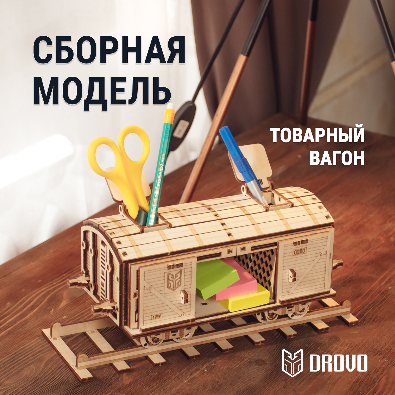 Купить DROVO деревянный конструктор, Настольный органайзер «Товарный Вагон», сборная модель, 305 элементов с доставкой по всей России.