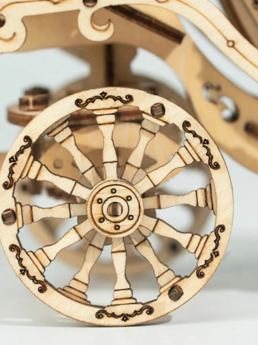 Все конструкции и механизмы внутри. Деревянный конструктор 3д "Карета из тыквы" начинает движение при помощи заводной пружины.