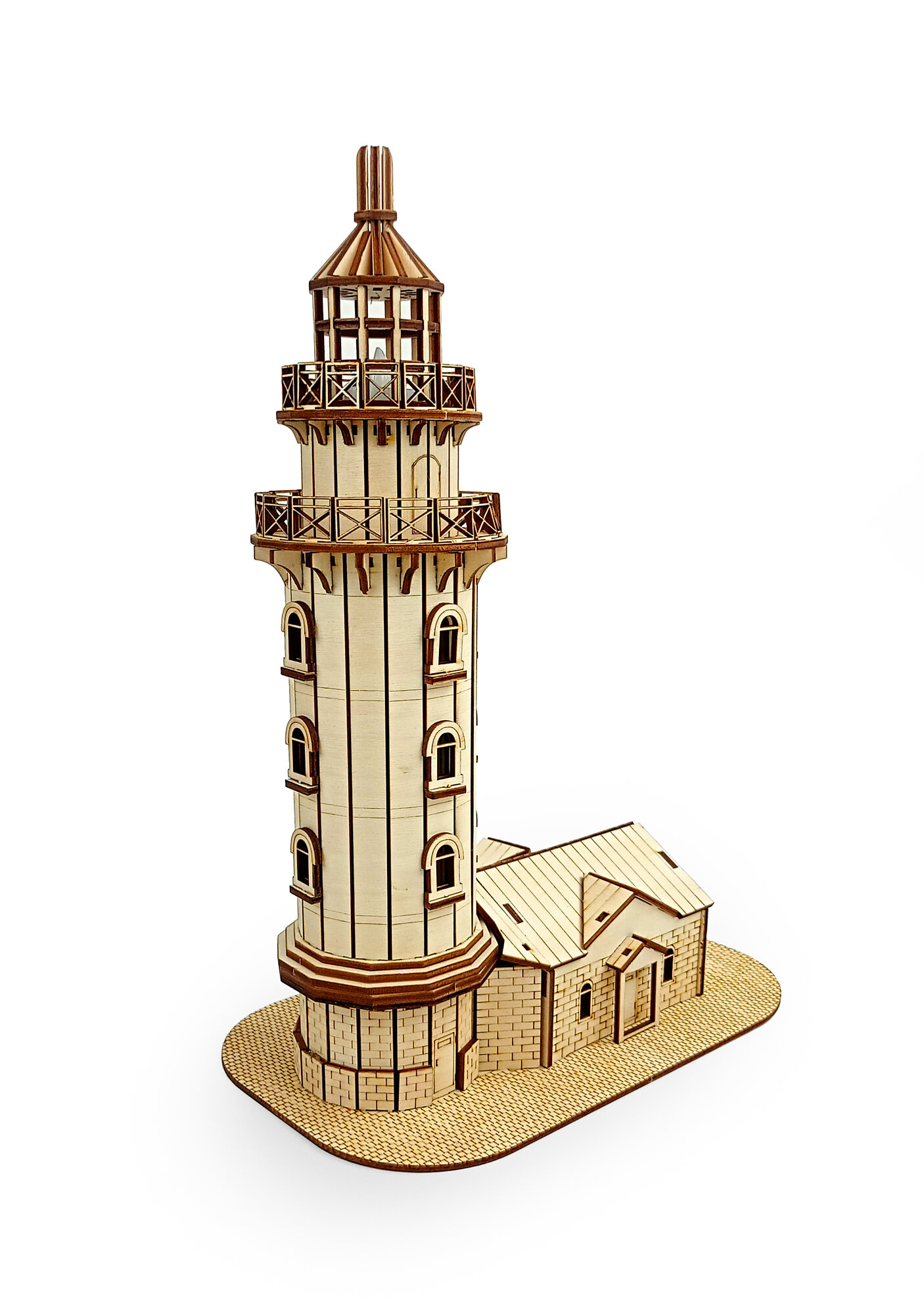 Деревянный конструктор "Маяк Турка" представляет собой сборную модель маяка, выполненную из качественных натуральных материалов. В комплект входят 213 деталей из березовой фанеры высшего сорта, подробная инструкция по сборке, наждачная бумага, клей ПВА и светодиодная свеча.