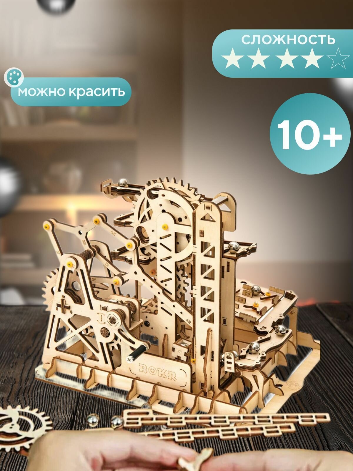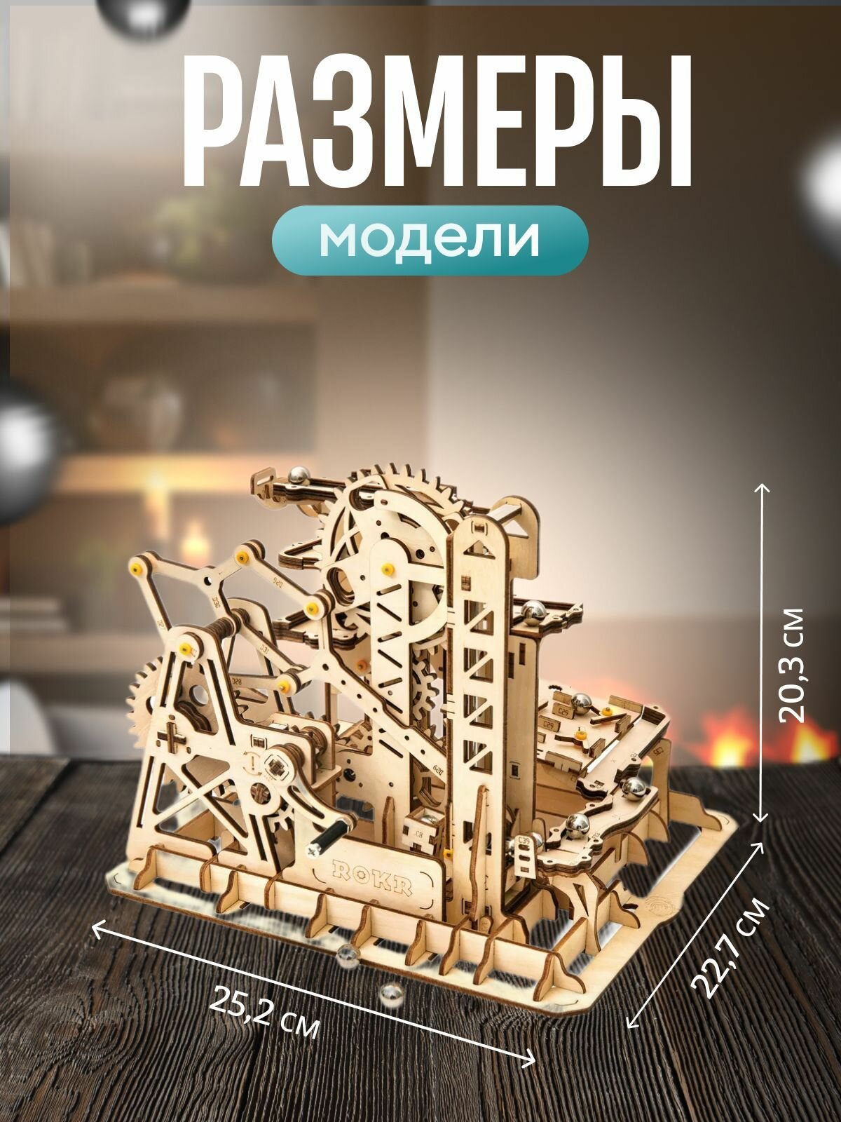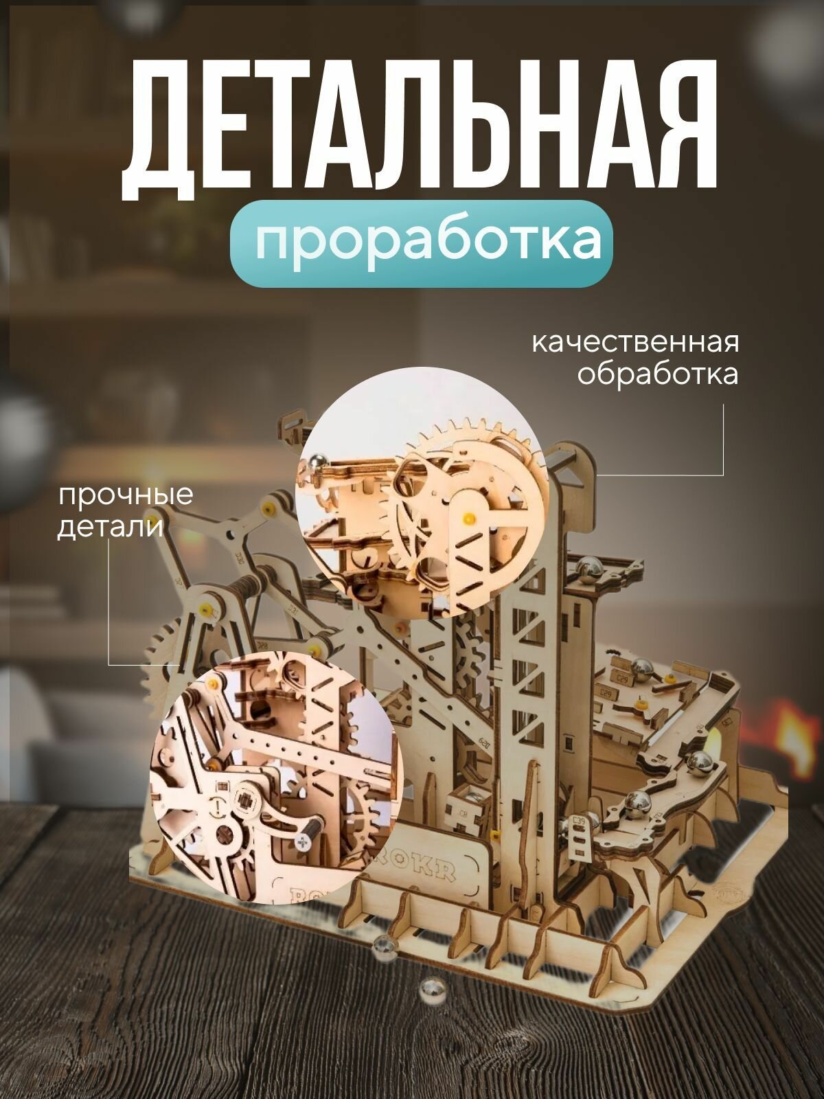 3Д конструктор ROBOTIME — это увлекательный и развивающий набор для создания серпантинов с шариками, шестеренок и заводных механизмов. Запустите механизм вращения и приведи в движение всю конструкцию, заставляя перекатываться металлические шарики по логическому пути.