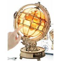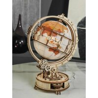 Деревянный механический конструктор - глобус Robotime это не только украшение интерьера в виде земного шара, но и практичный ночник с теплым светом для вашей комнаты. Маленькое увеличительное стекло диаметром 25 мм можно передвигать и по долготе, и по широте глобуса, позволяющее лучше рассмотреть каждую деталь на карте земного шара.