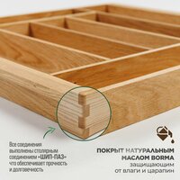 У нас вы сможете выбрать лоток нужного размера для любого кухонного ящика. Стенки лотка выполнены из дуба, дно из МДФ с шпоном дуба.