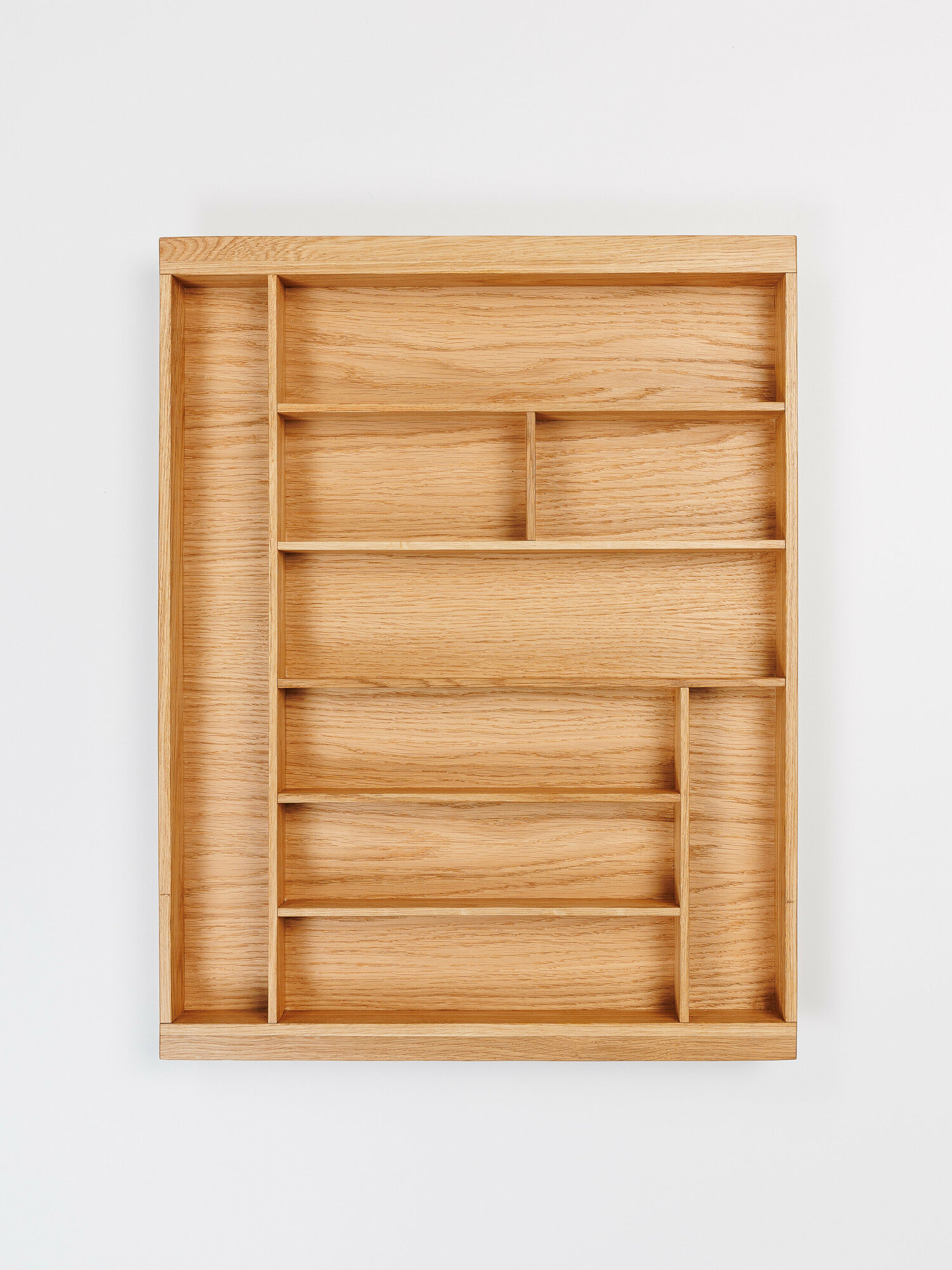 Лоток для столовых приборов из массива дуба предназначен для использования в ящиках Blum TANDEMBOX шириной 500 мм с фасадом 700 мм. Он подходит для корпусов с толщиной стенок 16 или 18 мм и имеет размеры 608x470x50 мм. Лоток был изготовлен вручную и пропитан натуральным маслом, что придает ему не только стильный внешний вид, но и дополнительную защиту от влаги и загрязнений. Он идеально подходит для хранения столовых приборов и других кухонных принадлежностей, обеспечивая порядок и удобство в использовании.