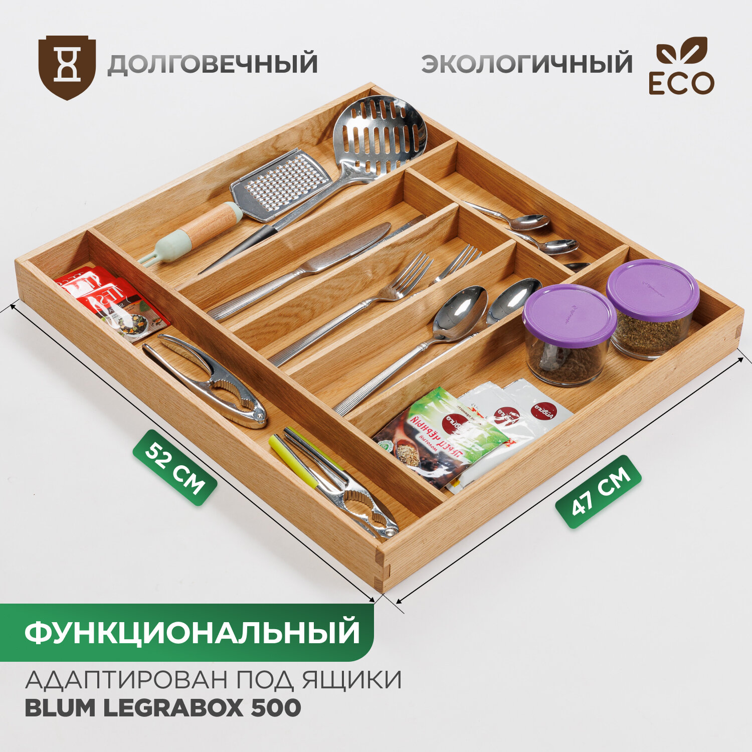 Этот лоток для ширины фасада 600 в ящик Blum LEGRABOX 500. Размеры: ширина 520 мм, глубина 470 мм, высота 50 мм.