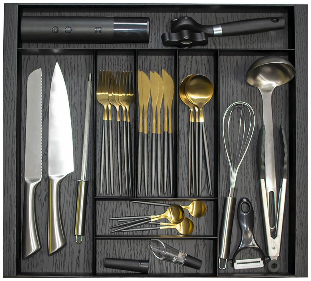 Купить Деревянный лоток вкладыш из массива дуба для столовых приборов и кухонных принадлежностей WOOD COMFORT LINE BLACK в ящик BLUM LEGRABOX в базу 600 с доставкой по всей России.