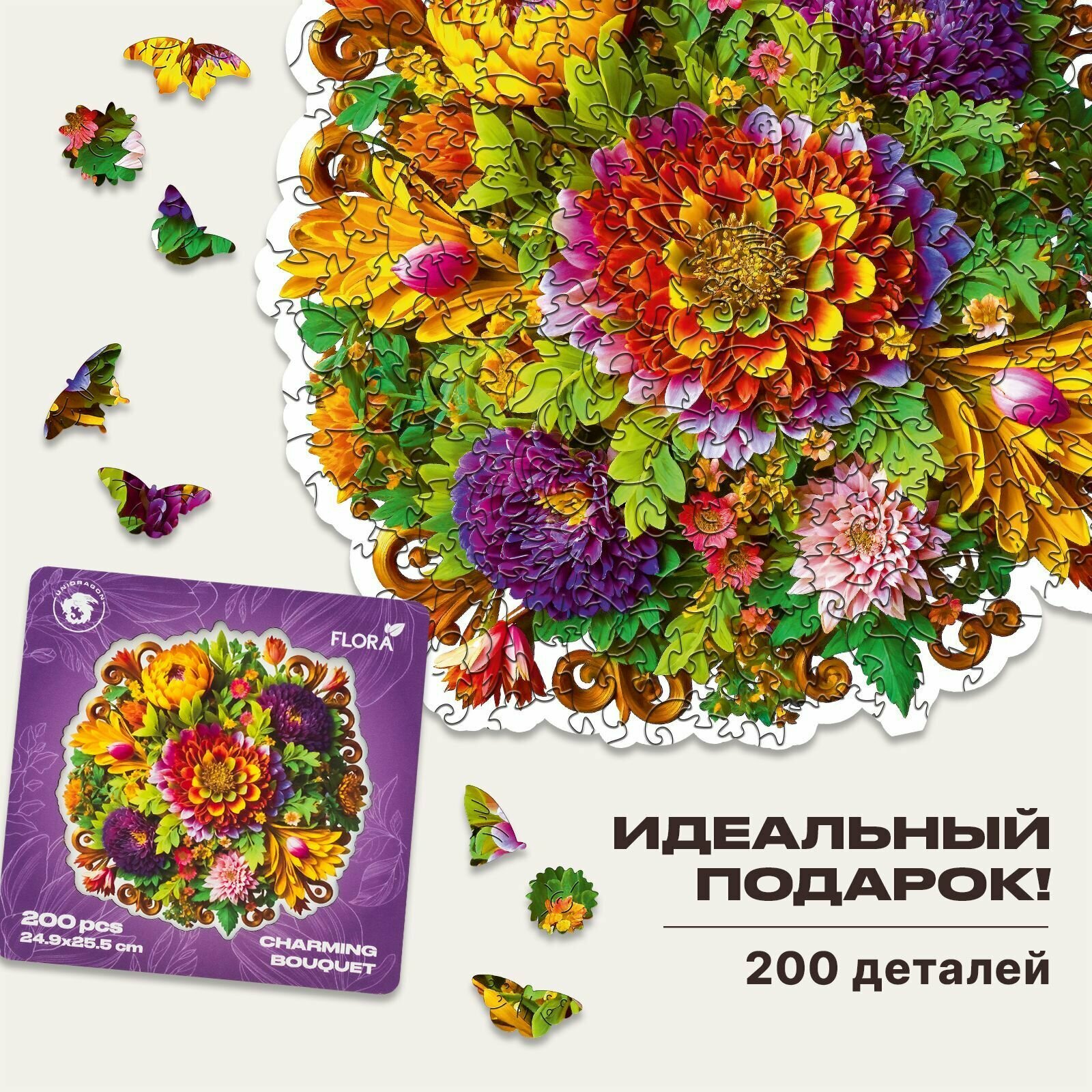 Купить Деревянный пазл для взрослых и детей UNIDRAGON Original в подарочной коробке / Unidragon FLORA Чарующий Букет подарок 24.9 x 25.5 см, 200 деталей с доставкой по всей России.