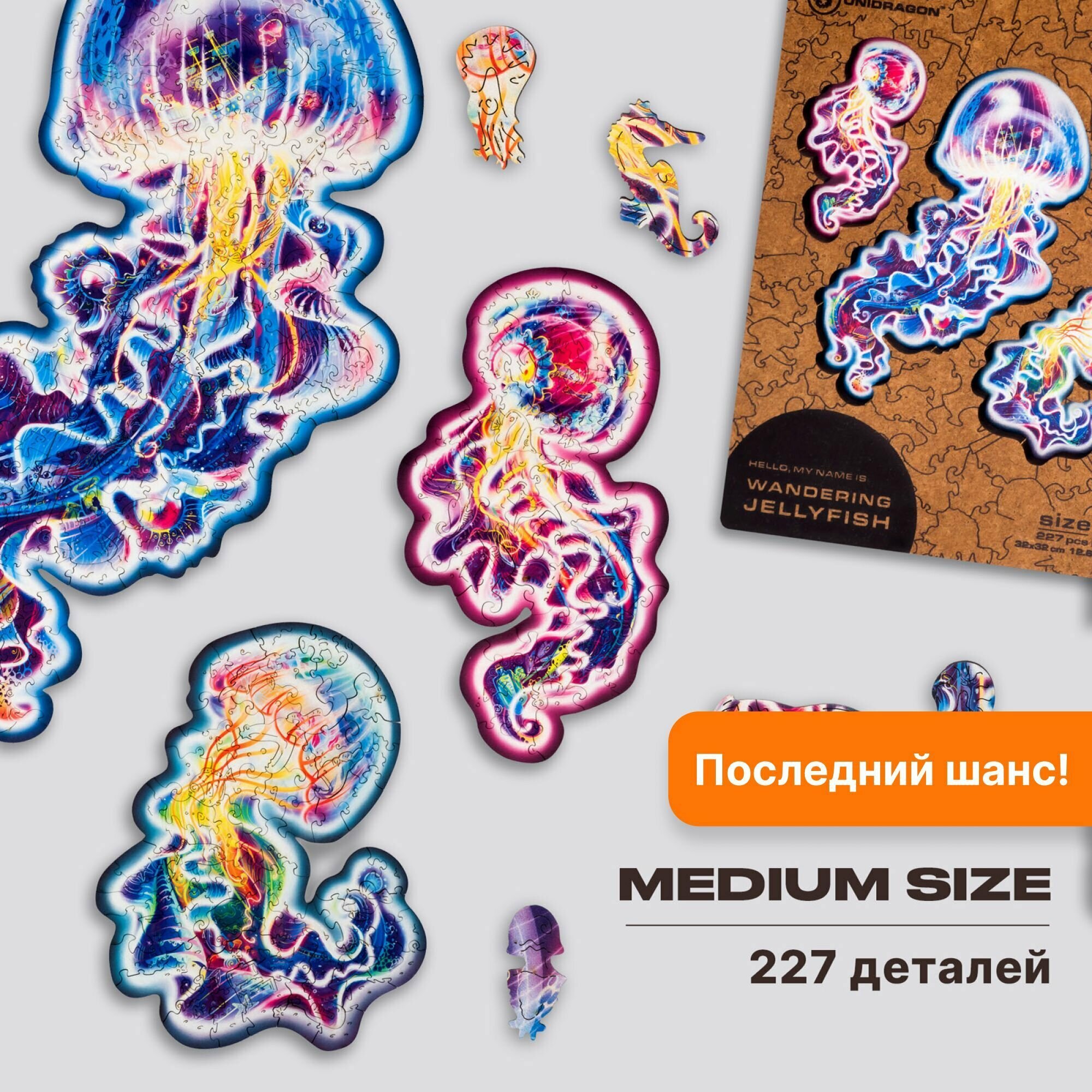 Деревянный пазл для взрослых и детей UNIDRAGON Original в подарочной коробке / юнидрагон Странствующие Медузы подарок 32 x 32 см, 227 деталей — M: сравнение цен, характеристики, фото, актуальное наличие и цены.