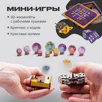 Quezzle Космические Приключения — совершенно новый формат развлечения. В одной коробке вы найдете потрясающий деревянный пазл из 1000 фигурных деталей, и настольную игру-квест с космическими 3d-кораблями, интересными заданиями, захватывающим сюжетом и дополнительными аркадными играми. Это основе игры — история Принца Юнидрагона и его прекрасной Принцессы. Злодей, похитивший принцессу, сбежал в далекий космос. И теперь герои готовят свои космические корабли, чтобы отправиться в погоню — в далекую Галактику, населенную обаятельными инопланетянами. Вас ждут десятки квестов, невероятные локации, сложные загадки и целая вселенная приключений! Чтобы найти и победить Злодея, понадобится воображение и изобретательность: даже сама подарочная коробка Quezzle открывается после решения головоломки! Иллюстрацию рисовала легендарная японская студия IC4Design. Quezzle Космические Приключения — это вершина искусства пазлов не только с точки зрения иллюстрации и сюжета, но и с точки зрения производства. Фирменная уникальная технология печати Unitouch делает поверхность пазла объемной, а цвета невероятно глубокими и насыщенными. Детали не выцветают, не боятся влаги, а высококачественный HDF делает их устойчивым к повреждениям. Quezzle Космические приключения состоит из 1000 деталей. На его сборку потребуется не менее восьми часов, так что зовите друзей! После сборки вас ждет множество захватывающих заданий. Каждое рассказывает свою маленькую историю, и вместе они сплетаются в настоящую космооперу! И не забудьте про аркадные игры, которые идут в комплекте и добавят сложности и веселья. В Quezzle Космические Приключения можно играть, даже если вы незнакомы с первой частью — и историей спасения принцессы Каппадокии. Quezzle рассчитан на прохождение соло или целой командой до четырех человек. Собирайте свой космический отряд и вперед, к звездам!