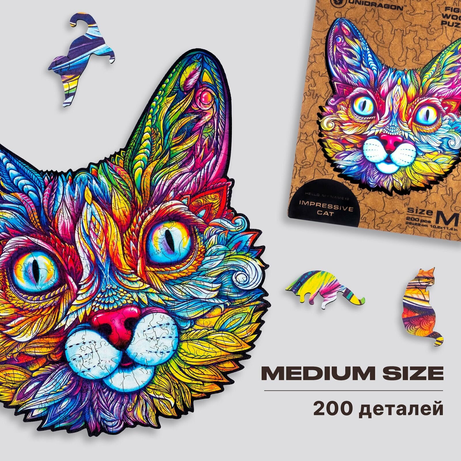Купить Деревянный пазл для взрослых и детей UNIDRAGON в подарочной коробке / юнидрагон Puzzle Выразительный Кот 26 x 29 см, 200 деталей — M с доставкой по всей России.
