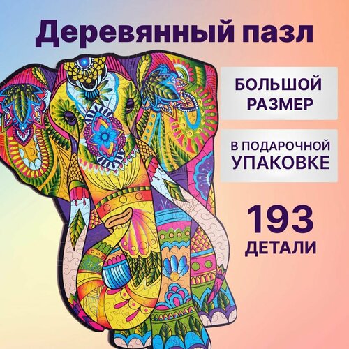 Деревянная игрушка Wood Trick Пазл Великолепный Слон (193 элемента) Если вы любите проводить время всей семьей, совмещая приятное с полезным, то фигурный пазл от компании Wood Trick – это именно то, что вам нужно. С этой яркой головоломкой даже самый скучный вечер сможет стать ярким, увлекательным и запоминающимся. Набор состоит из 193 различных деталей с интересным цветовым решением. Элементы яркие и изготовлены из натуральных материалов. Они не только прочные и приятные на ощупь, но еще и безопасные. Все детали поделены на 25 разновидностей, каждая из которых – это отдельный вид африканских животных. Поэтому во время сборки вы еще сможете вместе с малышами узнать, кто обитает на самом жарком континенте планеты. Пазл заинтересует детей и взрослых разных возрастов. Именно для того, чтобы собрать вместе всю семью или дружную компанию и была создана эта серия. Эти пазлы можно собирать всей семьей, дети могут дополнительно играть с фигурками и разрисовывать их с обратной стороны. Взрослые - декорировать помещение или помогать детям украшать свою комнату. Производитель уделил особое внимание качеству своей продукции. Пазлы сделаны из качественных материалов и отличаются интересным цветовым решением. Яркие оттенки привлекают внимание и заставляют забыть обо всем. Единственное желание каждого, к кому они попадают в руки – как можно быстрее собрать все в единую композицию. Особенности цветных деревянных пазлов Wood Trick: Каждая деталь неповторимой формы Подарочная упаковка премиум класса с наполнением Изготовлены из натуральной березовой фанеры 4 мм Система приклейки пазла уже в комплекте Фанера (дерево) Размер в собранном виде: 36x28 см