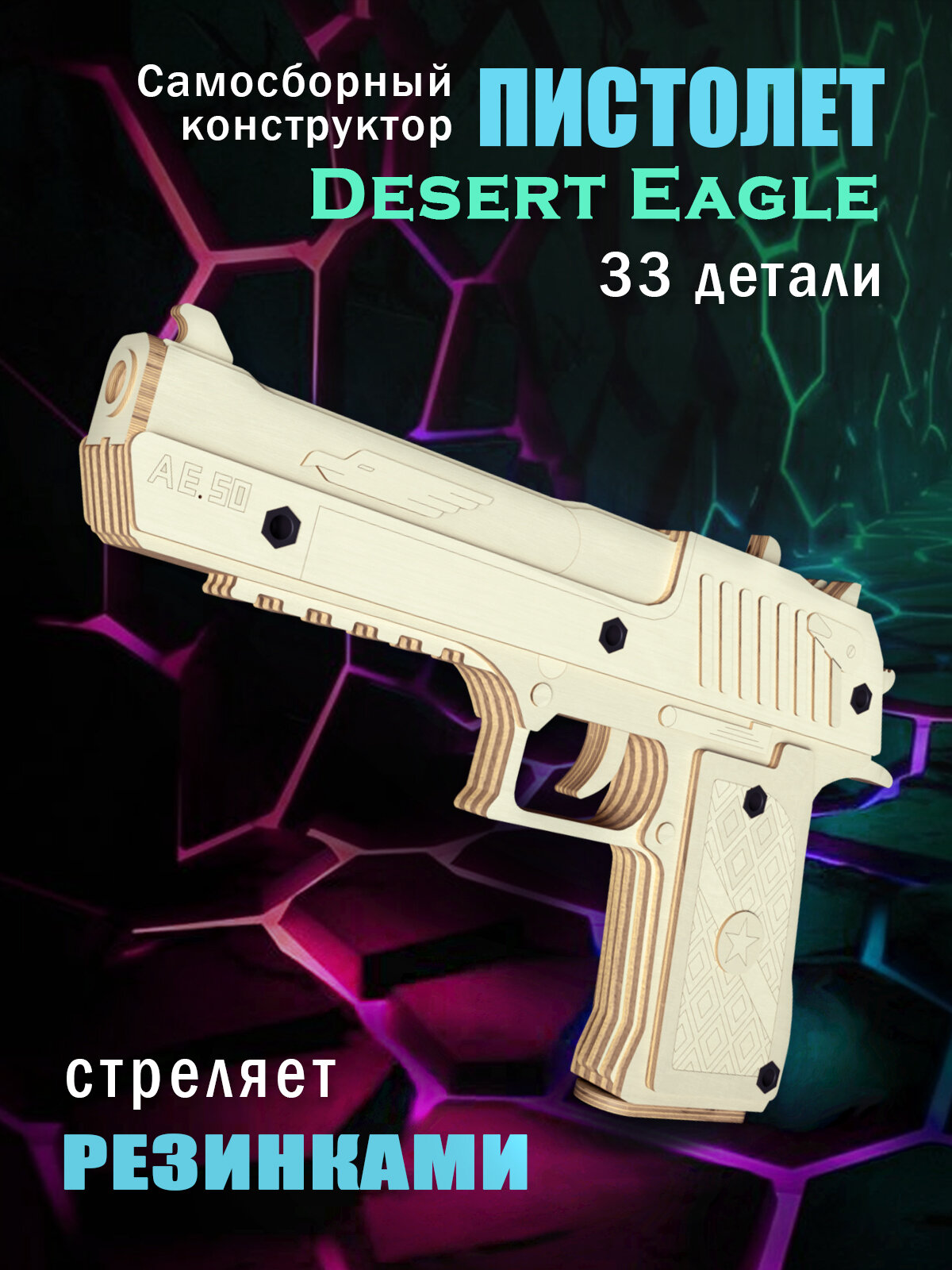 Купить Деревянный пистолет конструктор Desert Eagle от EcoToys резинкострел с доставкой по всей России.