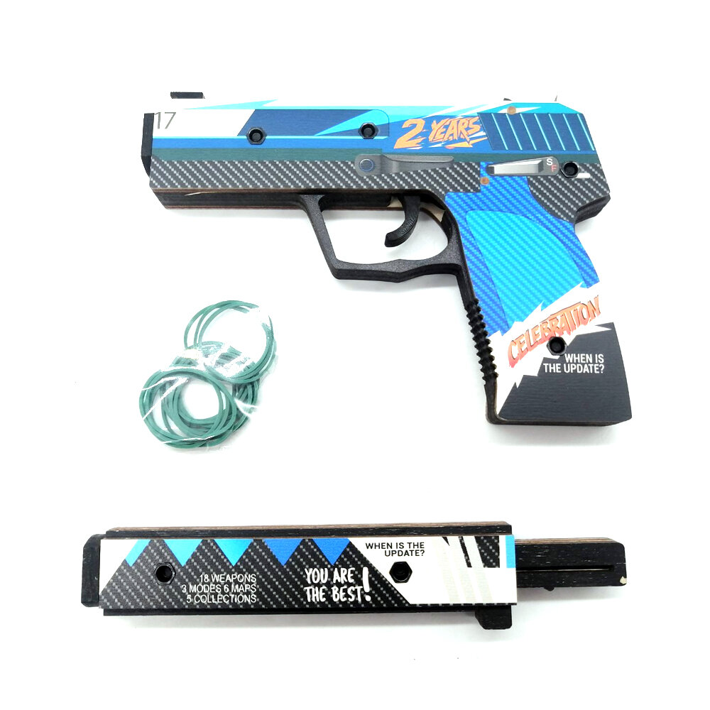 Деревянный пистолет ЮСП 2 года синий (резинкострел) Mod.2 EcoToys