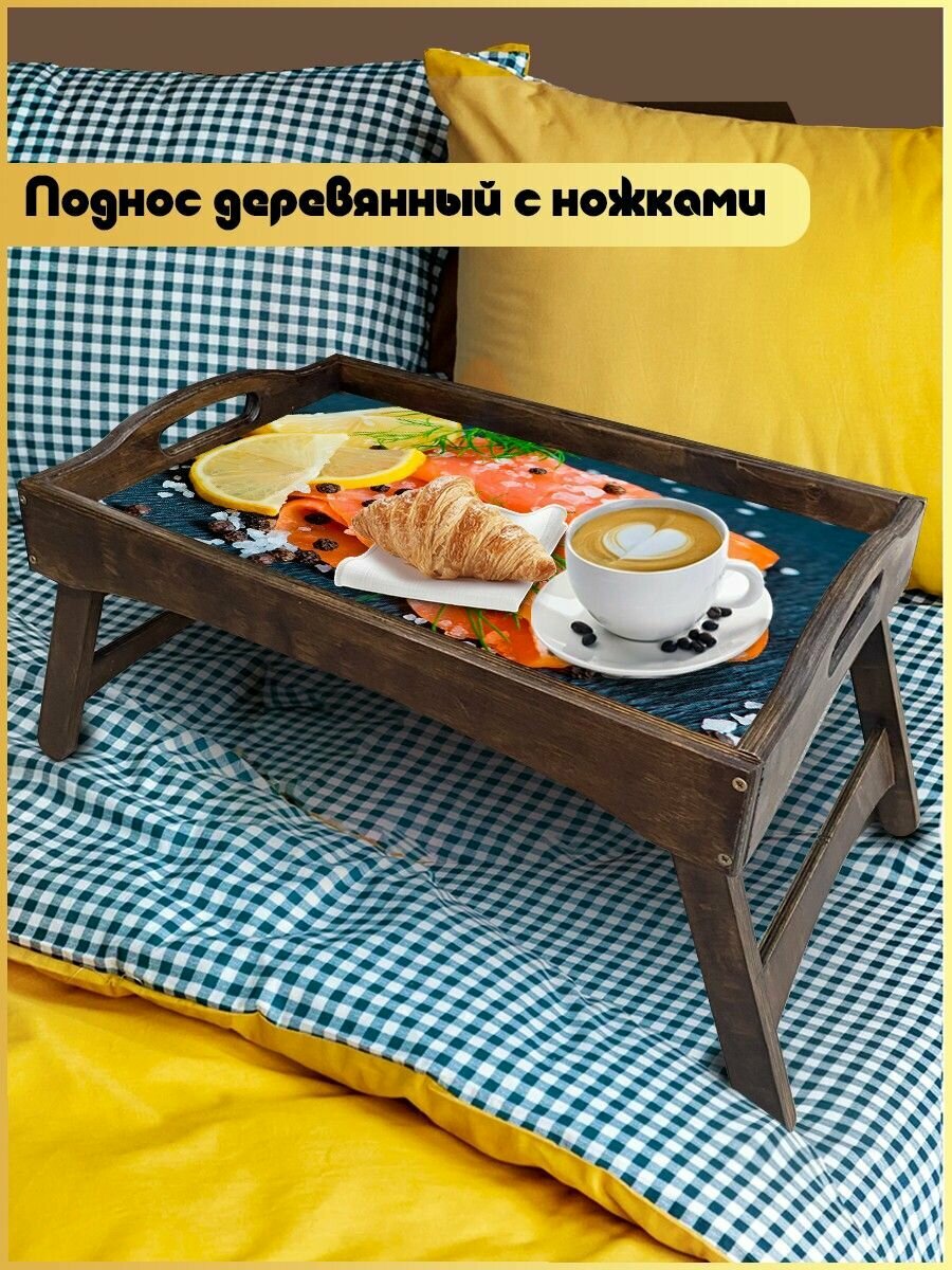 Деревянный поднос со складными ножками для приятного завтрака (обеда и ужина) прямо в постели.
