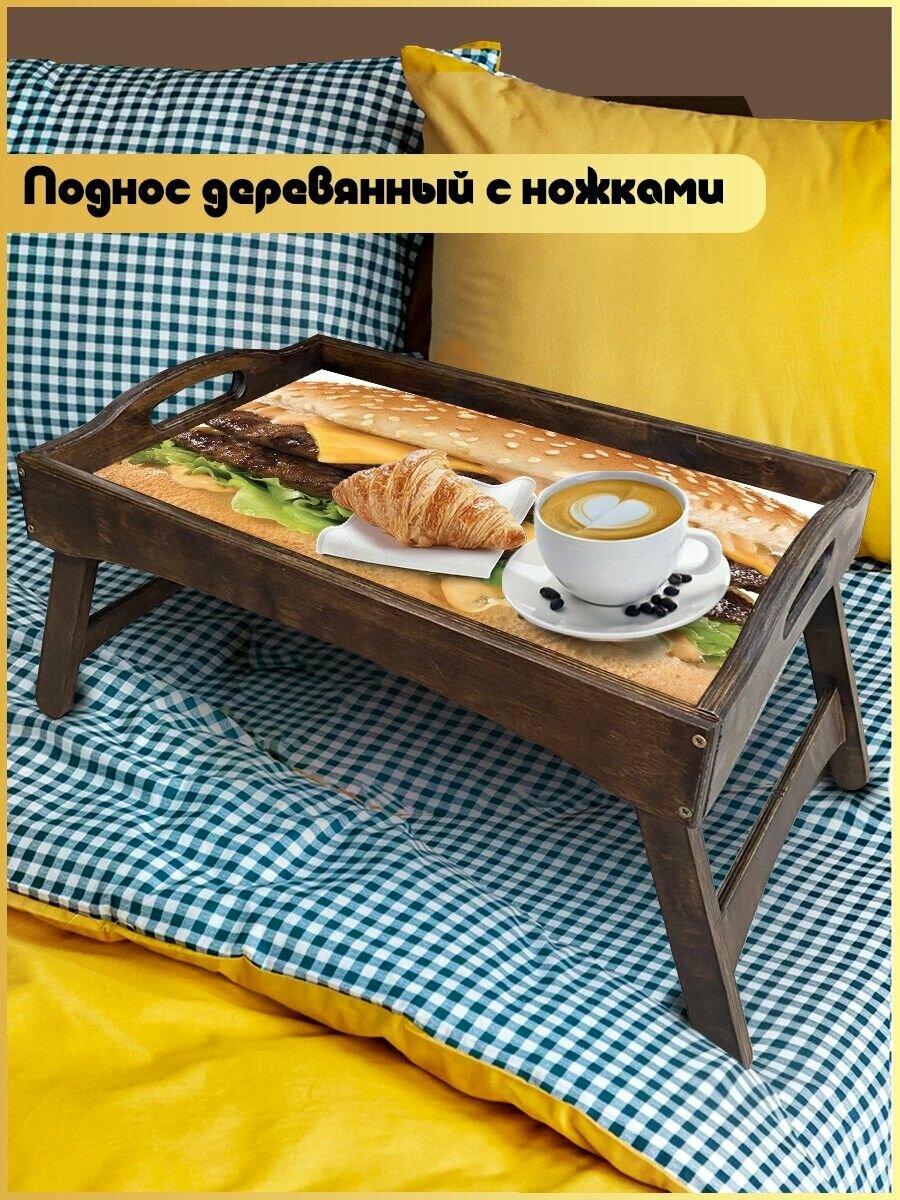 Деревянный поднос со складными ножками для приятного завтрака (обеда и ужина) прямо в постели.